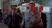 I've been digging more,the part with the cop witnessing Art doing very suspicious things was also filmed, Kevin Gage played him.You can spot the car too.So I guess that the whole part was shot.Only difference is Rumsfield doesn't fall from the roof.